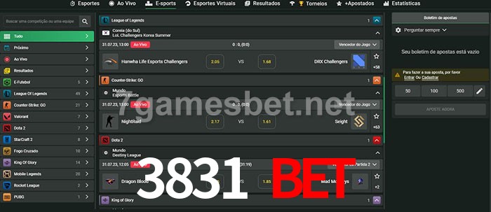 O 3831 Bet oferece uma grande seleção de opções de apostas em e-sports com probabilidades competitivas